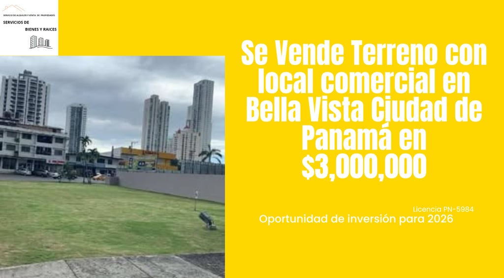 ¡Se Vende Terreno con Local Comercial en Bella Vista, Ciudad de Panamá!